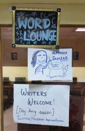 There was a room set aside to be an all day open session for writers. There’s a local group called Alphabet Sambar (Sambar is a soup) that has a regular meetup to help each other with writing. They made sure to welcome attendees and keep a good discussion going all day.