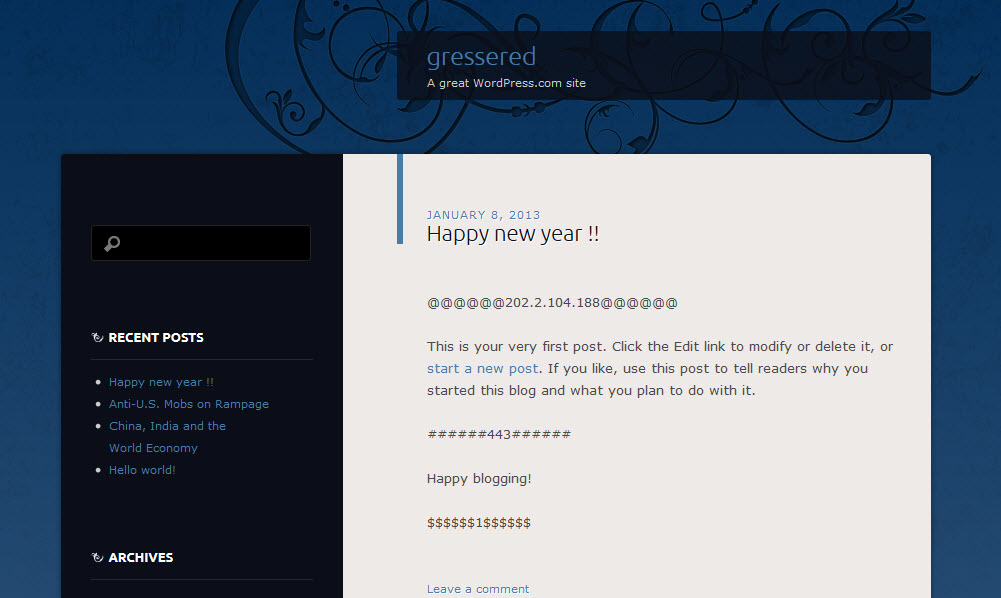In this example at “gressered.wordpress[.]com”, we found multiple blog posts, all of which had likely served as content for specific targeting campaigns. The same C2 configuration was “hiding in plain sight”. However, it is entirely possible that the attackers could have modified the second stage C2 configuration at any point previously. The earliest post was dated July 31, 2012, suggesting that this specific blog has been in use for nearly a year as a first stage interaction point.