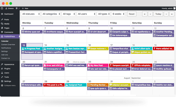 In the free plugin, PublishPress provides an editorial calendar, notifications, editorial comments, custom statuses, content overview, and the ability to create custom metadata for posts. Its creators also offer commercial add-ons for things like a content checklist, Slack notifications, multiple authors, WooCommerce checklist, and more.