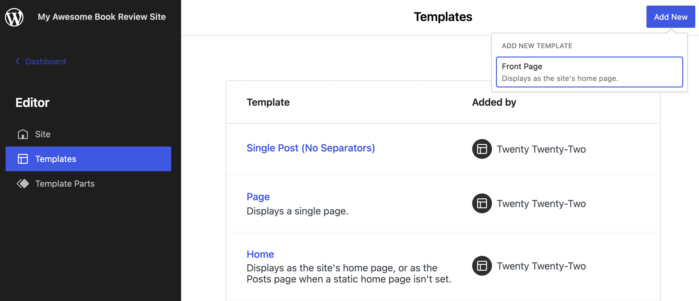 Gutenberg design contributors are exploring how the template creation UI can be updated to expand the types of templates that user can create using the Site Editor. In WordPress 5.9 users can edit any template that a theme includes, but template creation is limited to a few basics: