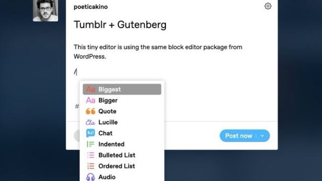 One of the most thought-provoking statements to come out of WordCamp Europe 2022, was when … Continue reading Gutenberg Editor Now In Testing On Tumblr and Day One Web Apps
