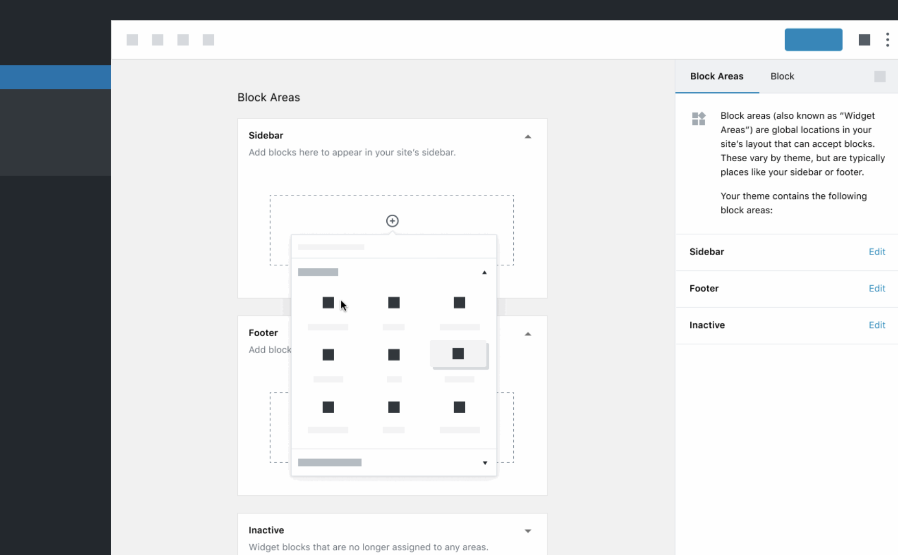 - The block editor should read and update blocks in widget-editing areas via the REST API.