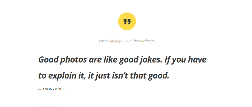 As is the case with virtually every other recent theme release from WordPress.com, Hew includes support for post formats. The theme prominently features post format icons at the top of every post. Each format has its own subtle differences in style.