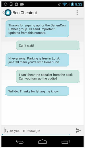 Many WordCamps use MailChimp to organize event emails. The Gather app allows you to text message your MailChimp email subscribers to keep them updated throughout the event. Subscribers can respond to organizers individually with no app or setup required. For example, if you want to alert everyone where parking is located, you can send a quick text in the morning. Attendees can also alert you to any problems.