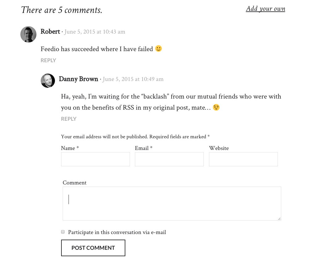 “We didn’t set out with intentions of competing with Disqus,” he said. “However, a few months in it became clear that there are usually two reasons people were not using native comments, and we would need to address both if we wanted widespread adoption of Postmatic.
