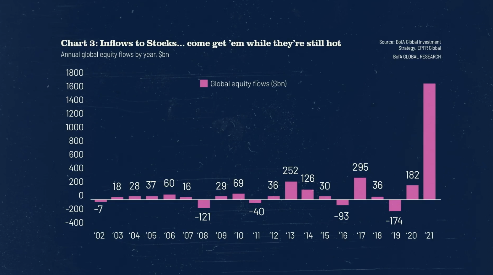 “This is driven by another trend, which I found utterly shocking to learn and understand, which is capital inflows to stocks,” Mullenweg said. He shared a chart that shows how much money is moving from other assets into the public equity markets.