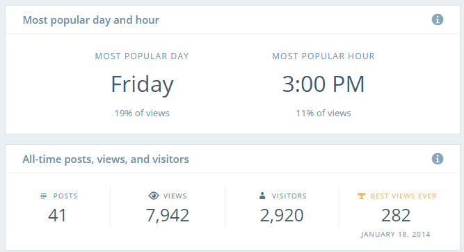 Insights also calculates the most popular day of the week and the most popular hour based on when the site gets the most views on average.