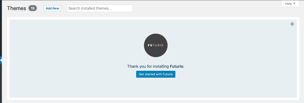The Futurio theme has also employed a similar style notice for getting started after activation: