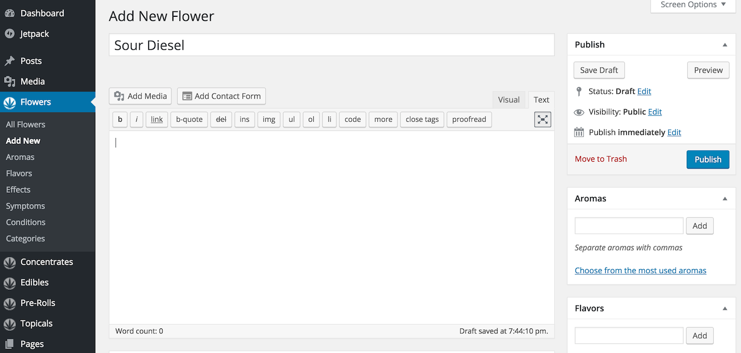 Entering a new menu item is as easy as writing a post, so dispensary owners will have no problem keeping their menus updated: